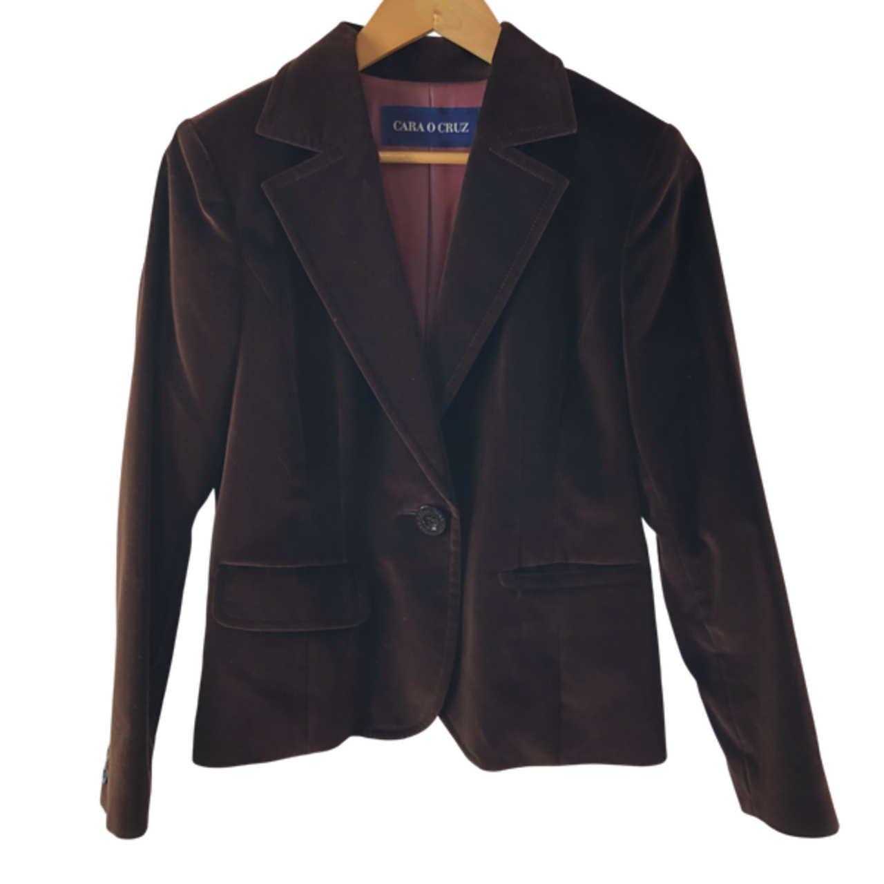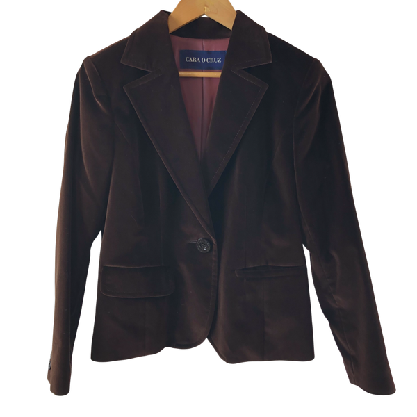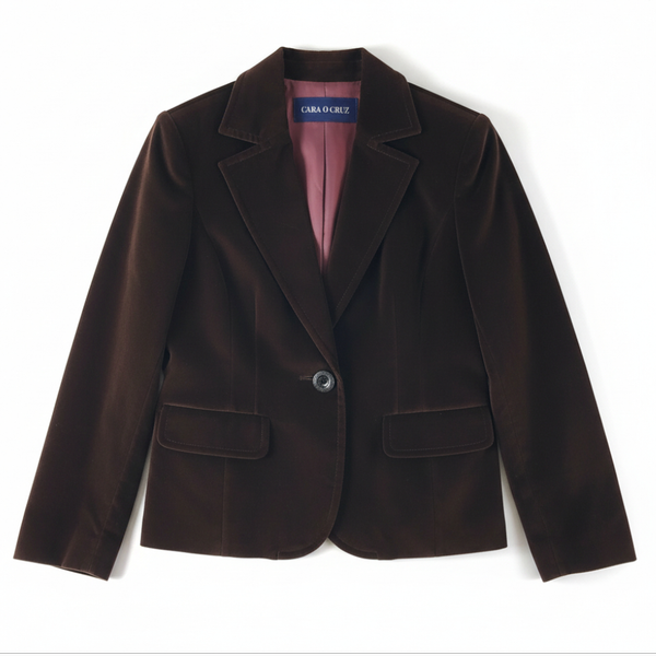 キャラオクルス CARA O CRUZ ジャケット ベロア素材 一つボタン ブラン印字ボタン サイドポケット ブラウン 9サイズ 985013