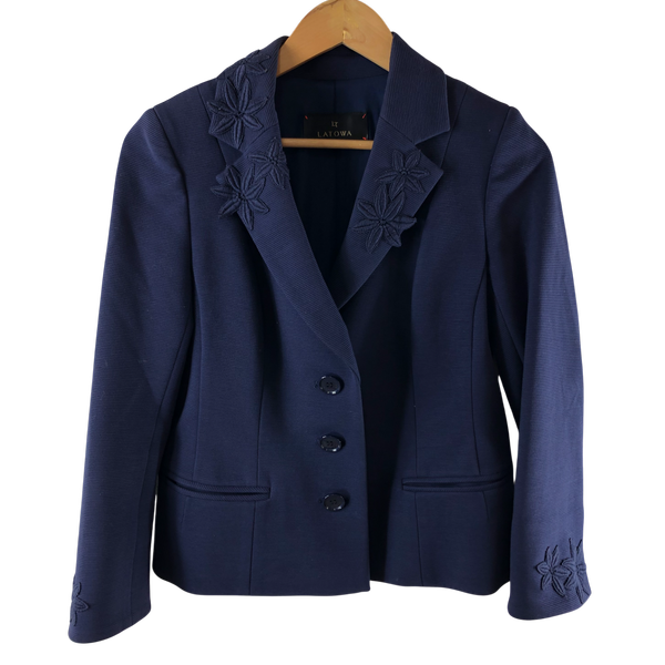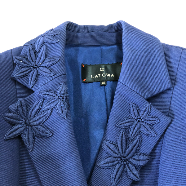 ラトゥワ LATOWA ラピーヌ ジャケット 花刺繍装飾 サイドポケット ボタン ブルー系 40サイズ 986024