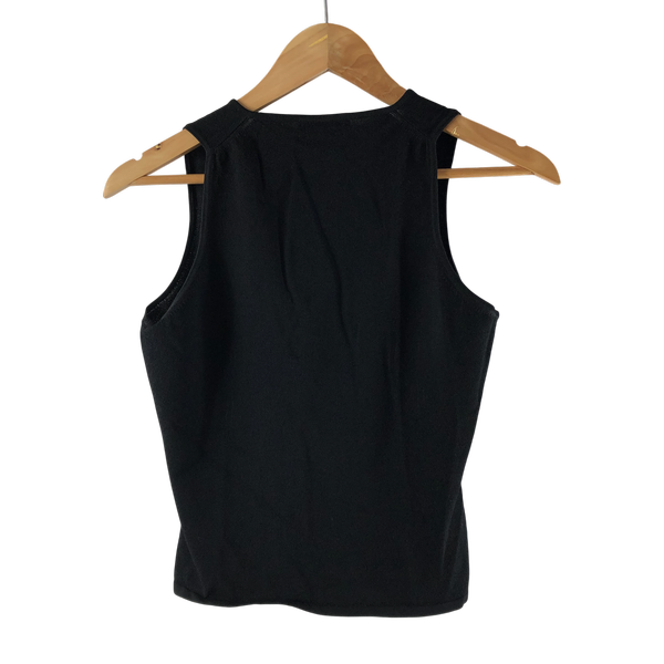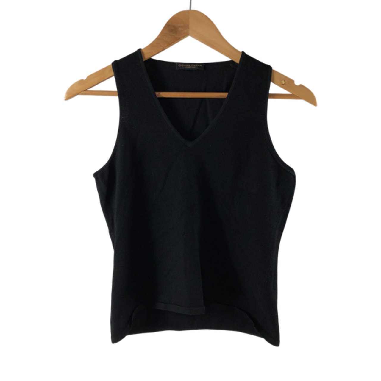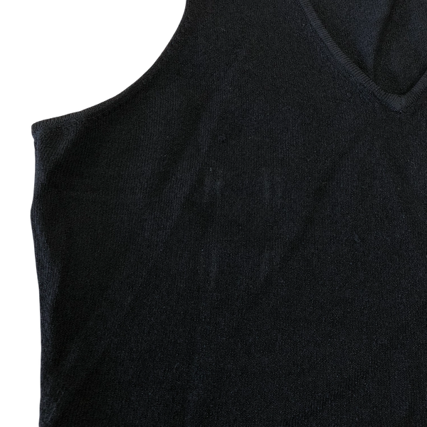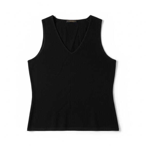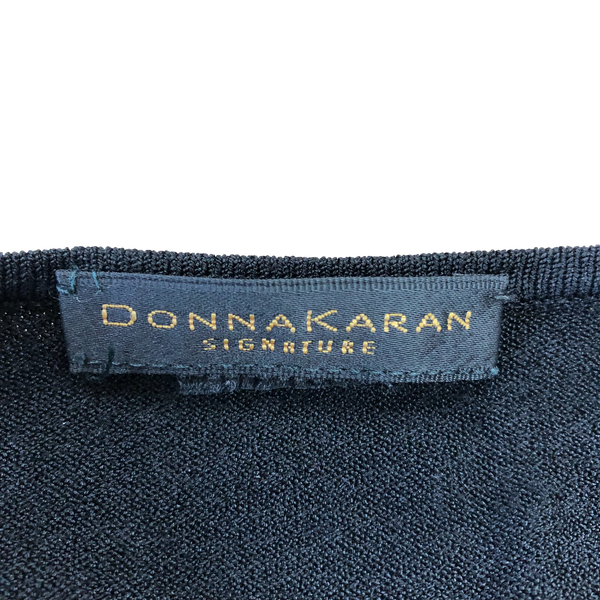 ダナキャランシグネイチャー DONNA KARAN SIGNATURE カットソー ノースリーブ Vネック 無地 組成表示タグ無し 黒 985000