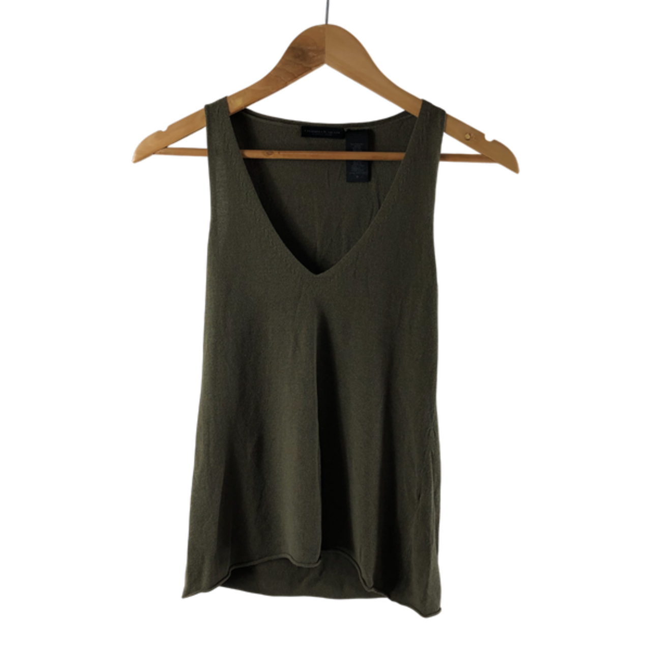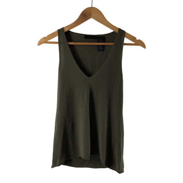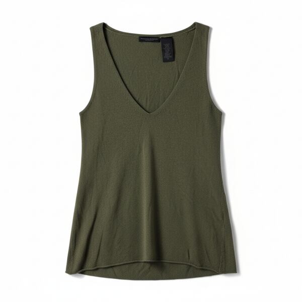 ダナキャランコレクション DONNA KARAN COLLECTION カットソー ノースリーブ Vネック 無地 カーキ 985001