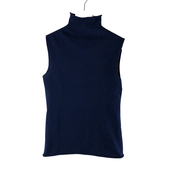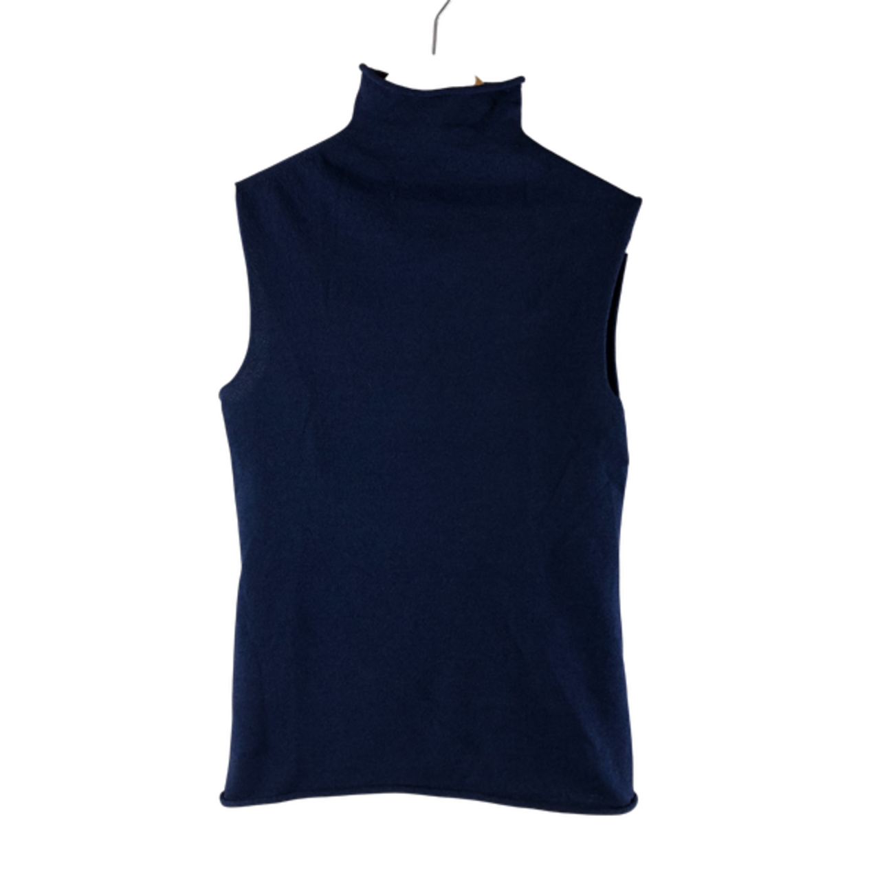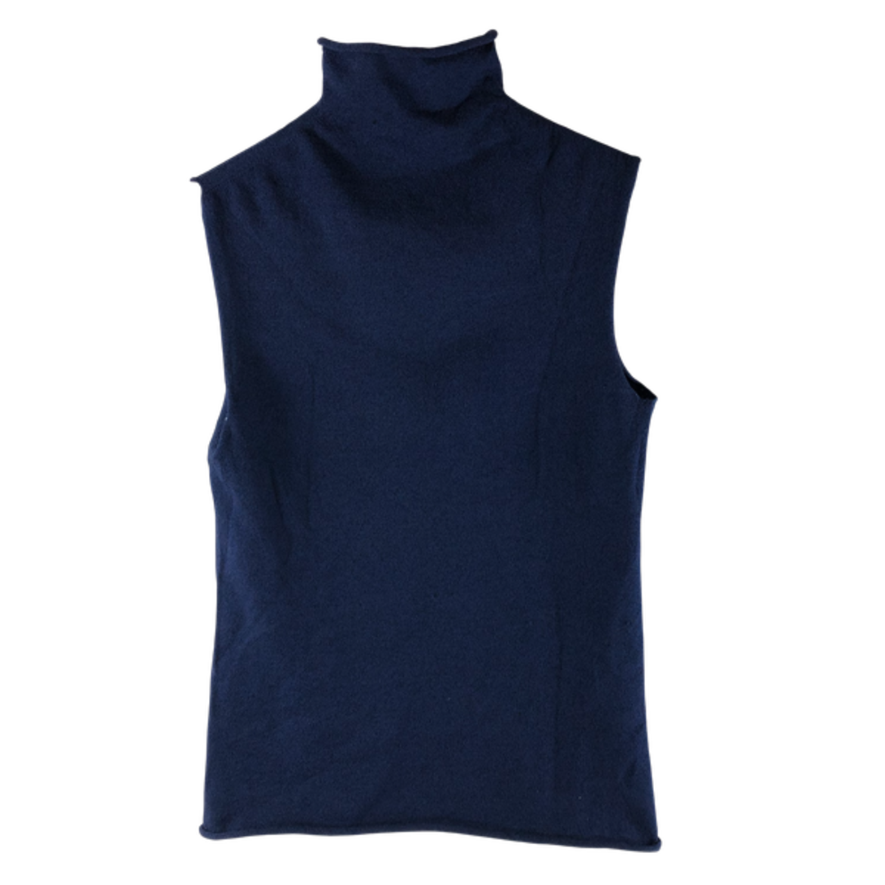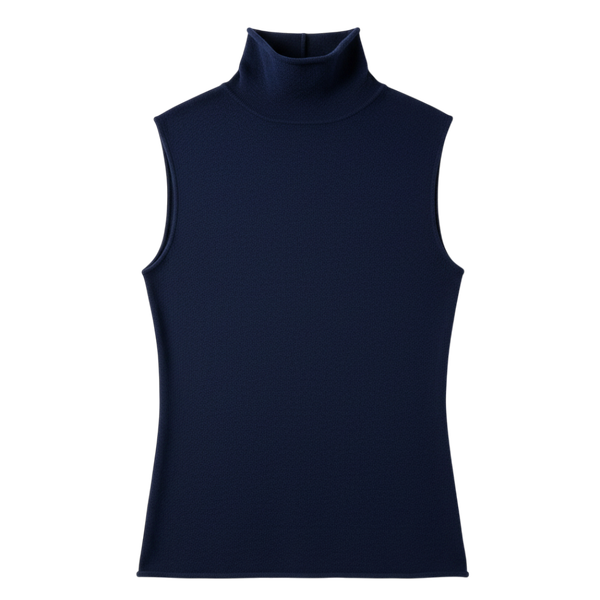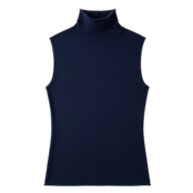 上品なネイビーカラーが大人っぽい、ノースリーブのボトルネックトップスです。