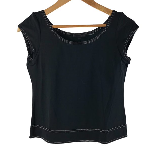 ダナキャラン Donna Karan カットソー 半袖 ステッチデザイン黒 Mサイズ 985008