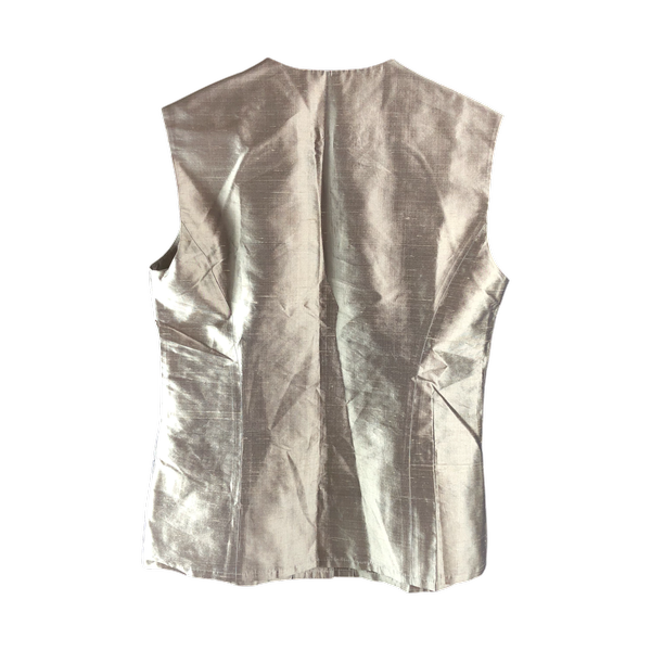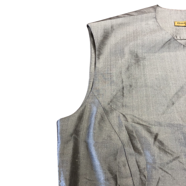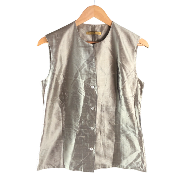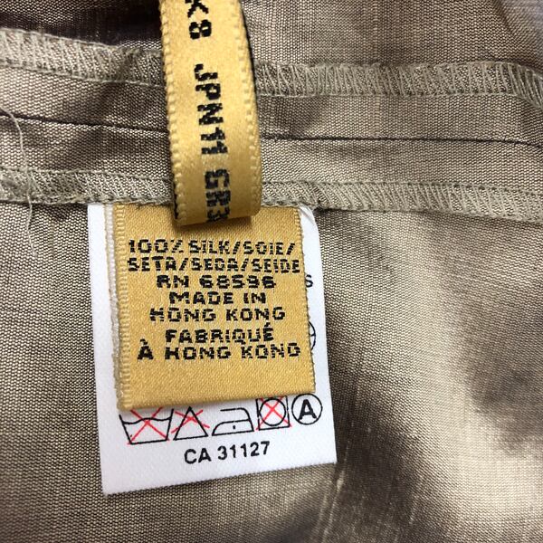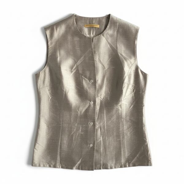 ダナキャランシグネイチャー DONNA KARAN SIGNATURE カットソー ブラウス ノースリーブ サテン風 シルク100% ボタン ベージュ系 11サイズ 985002