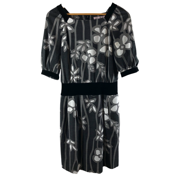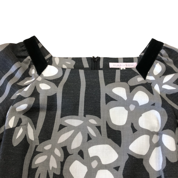 アルマアンローズ ALMA EN ROSE ワンピース 花柄 異素材ミックス ベロア 裏地付き グレー 36サイズ 984993