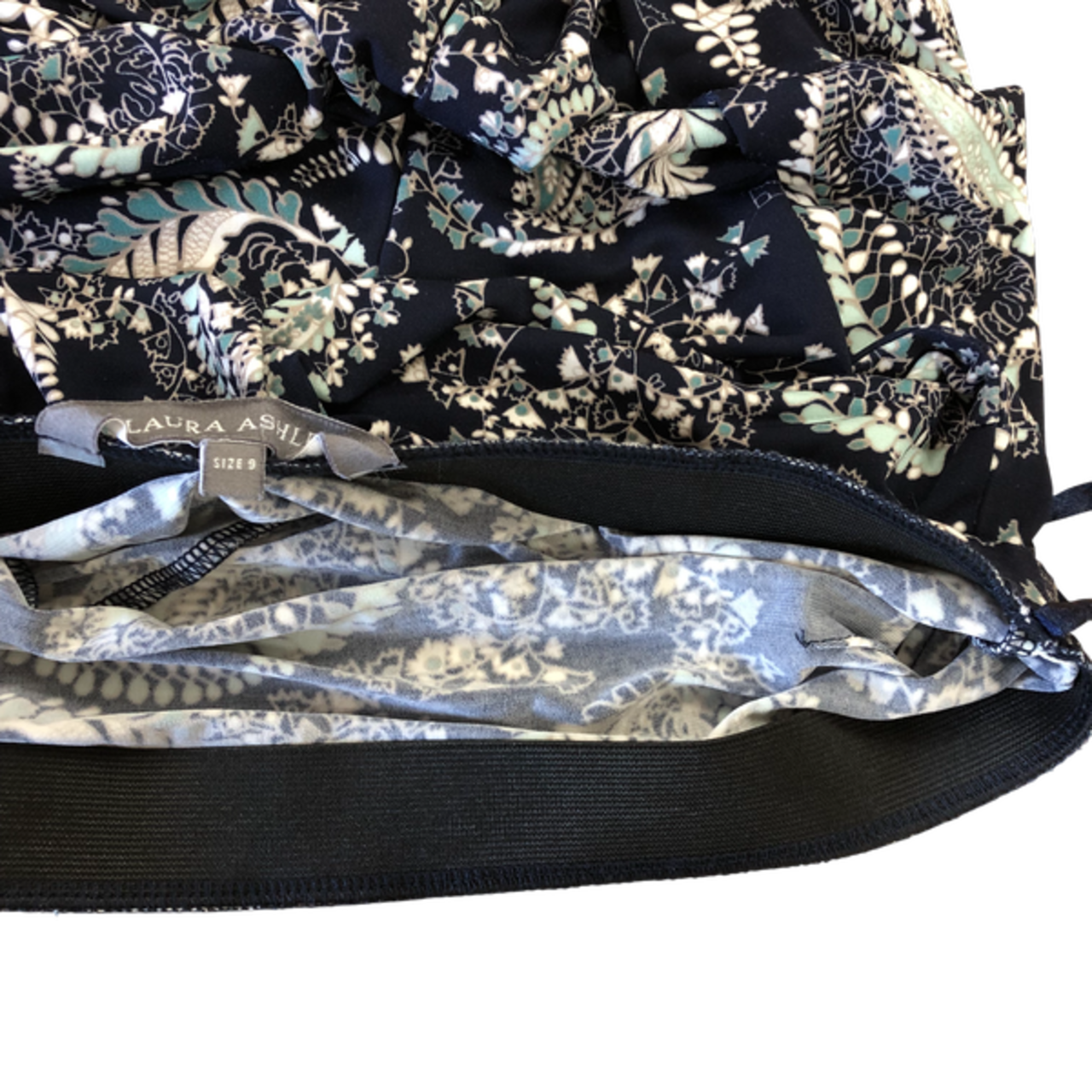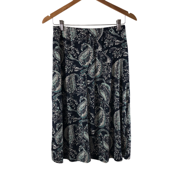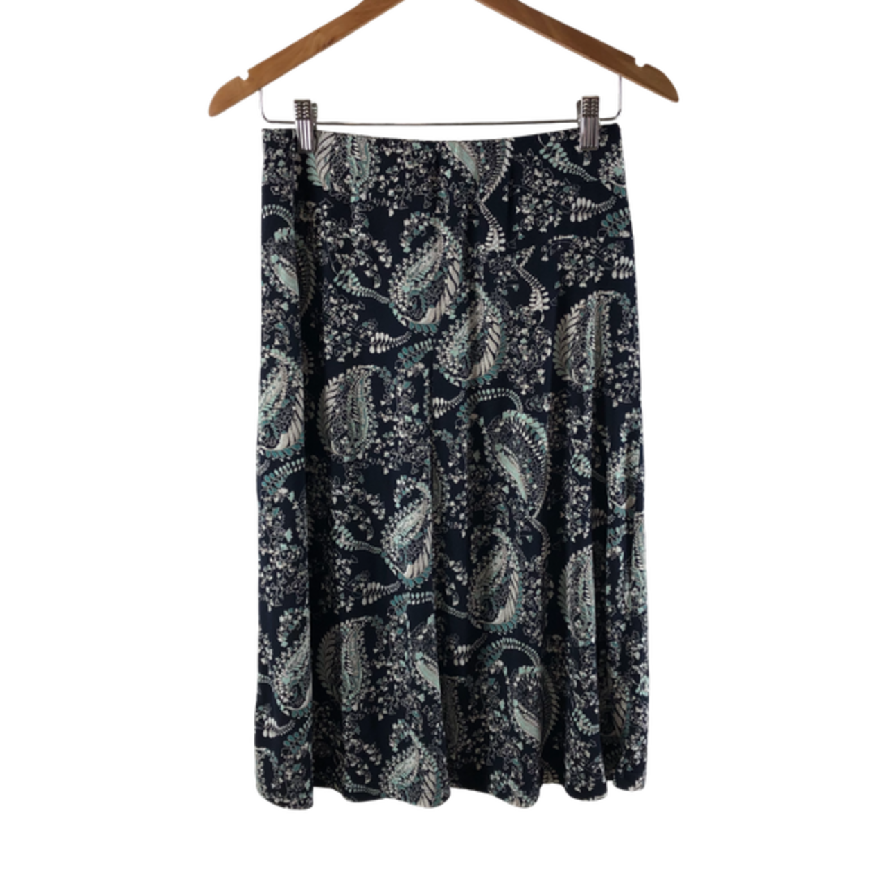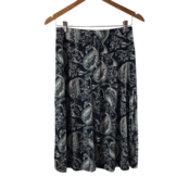 ローラアシュレイ Laura Ashley スカート ペイズリー柄 フレア ウエストゴム 水色 ネイビー系 9サイズ 984988
