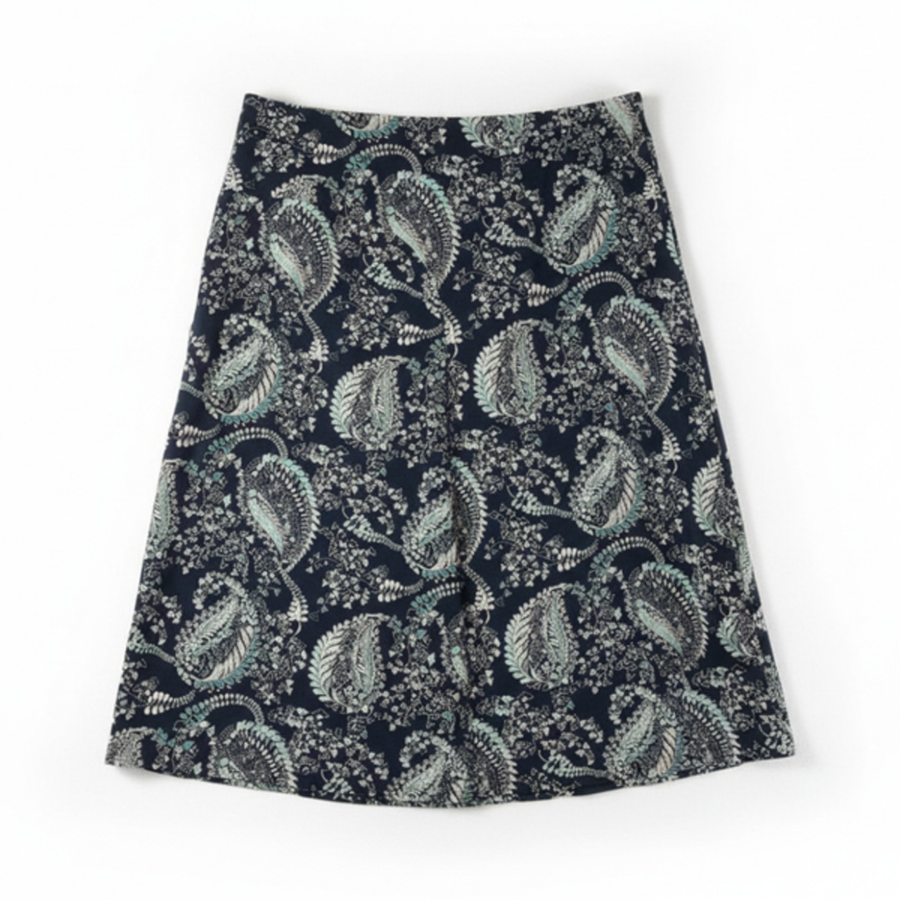 落ち着いたダークカラーにペイズリー柄が映える、雰囲気たっぷりのスカートです。