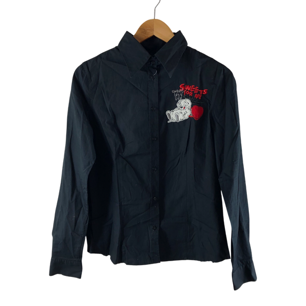 ヒストリー HISTORY アイスバーグ シャツ ブラウス 長袖 犬 英字 ハート 刺繍 綿100% イタリア製 濃紺系 48サイズ 982334