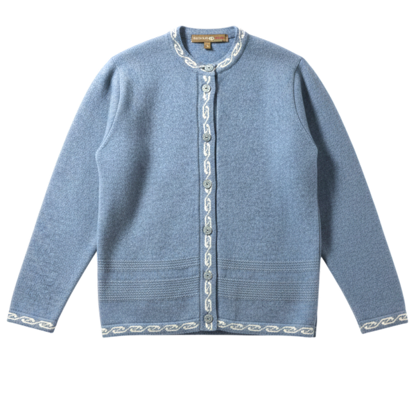 やさしいライトブルーが印象的で、見た目にも柔らかな雰囲気のニットカーディガンです。