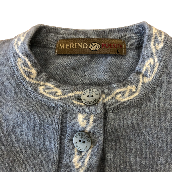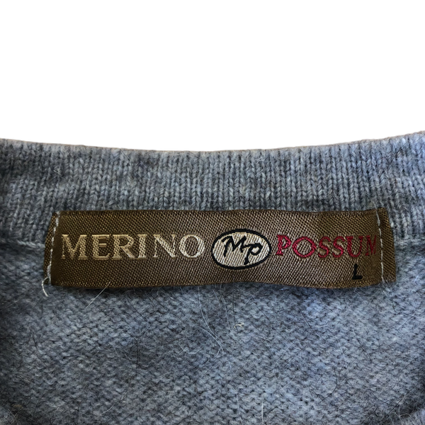 メリノポッサム MERINO POSSUM カーディガン ニット ブランドボタン メリノウール ライトブルー Lサイズ 984944