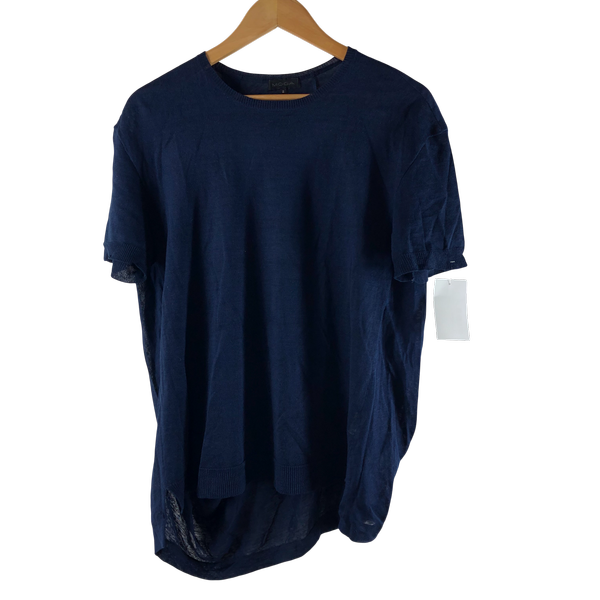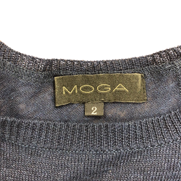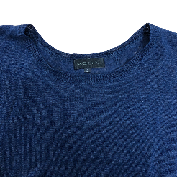 モガ MOGA カットソー 半袖 サマーニット リネン100% シンプル ネイビー 2サイズ 984928