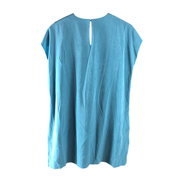 落ち着いたブルーグリーンが涼しげなノースリーブブラウスが入荷しました。