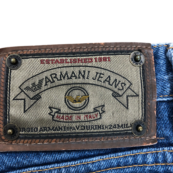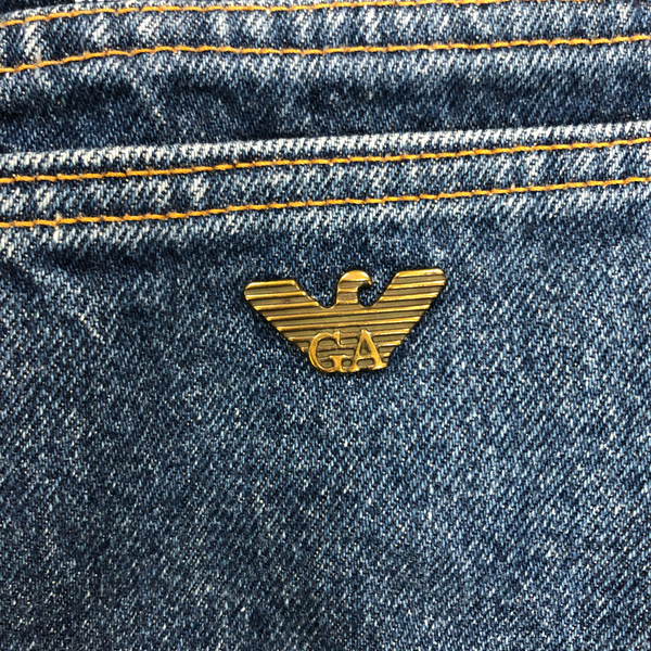 アルマーニジーンズ ARMANI JEANS デニム ストレート チャーム付き 革ラベル ブルー系 984917