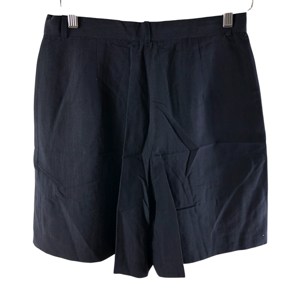 上品なネイビーカラーが使いやすい、ラップ風デザインのキュロットです。