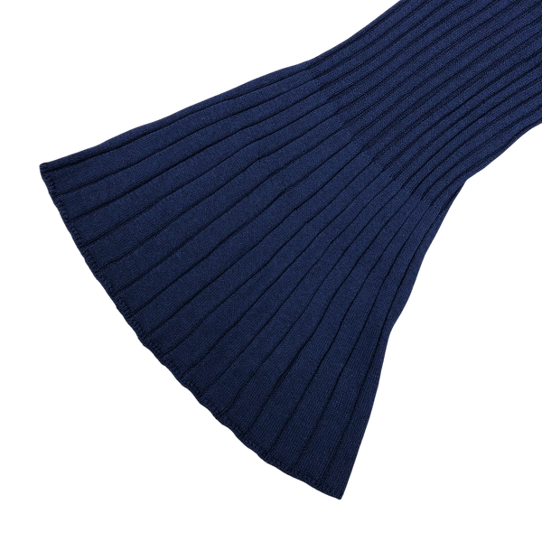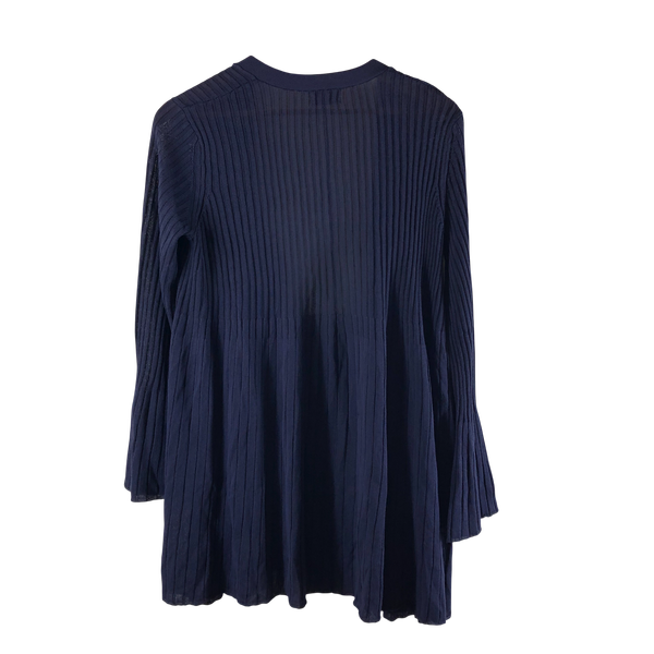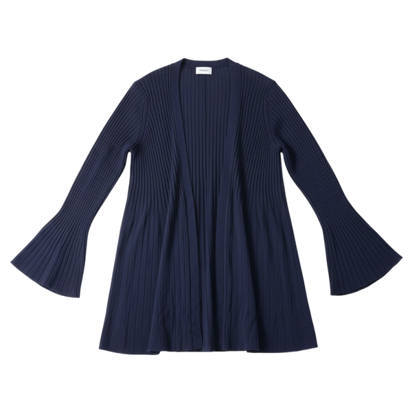縦リブがきれいに映える、上品なネイビーカラーのロングカーディガンです。