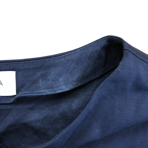 異素材切り替えが目を引く、ネイビーカラーのデザインカットソーです。
