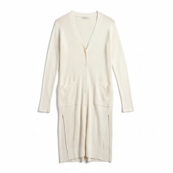 縦リブがすっきり見えを叶えてくれる、上品なホワイトのロングカーディガンです。