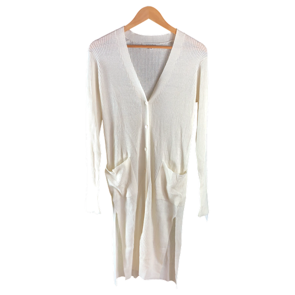モガ MOGA カーディガン ロング Vネック リブ ポケット スリット 麻 白 アイボリー系 2サイズ 984941