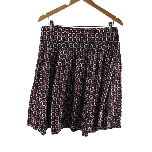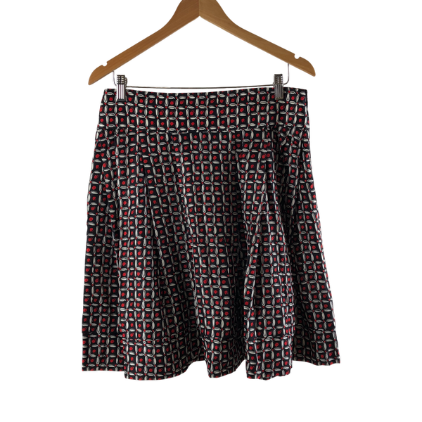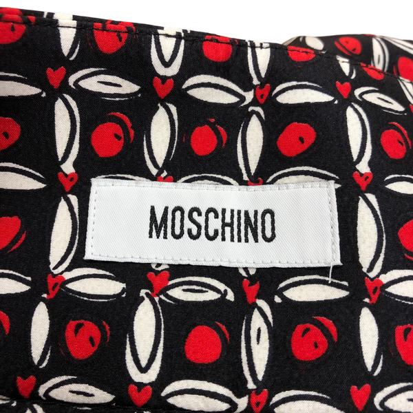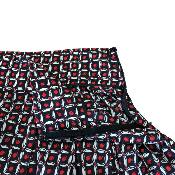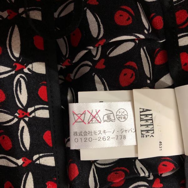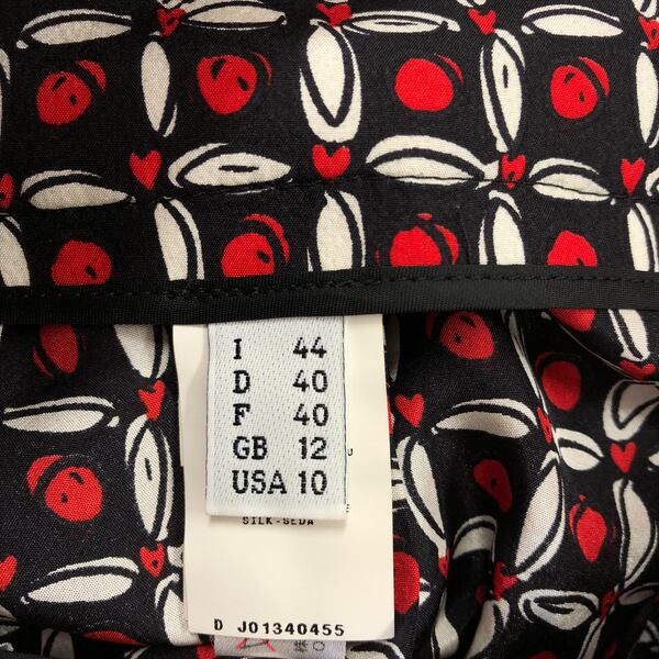 モスキーノ MOSCHINO スカート 柄模様 レトロ フレア プリーツ シルク100% イタリア製 赤 黒系 978286