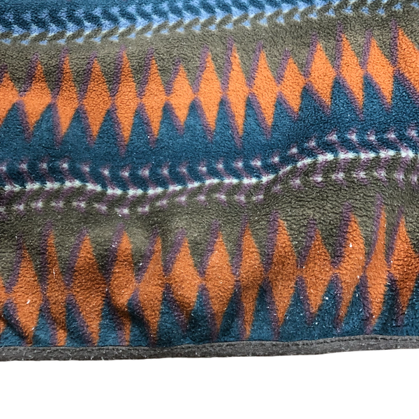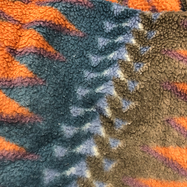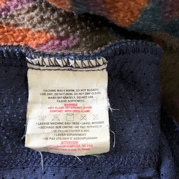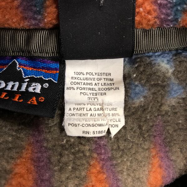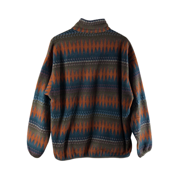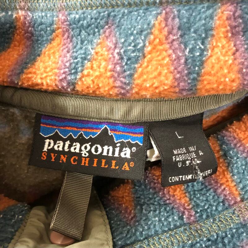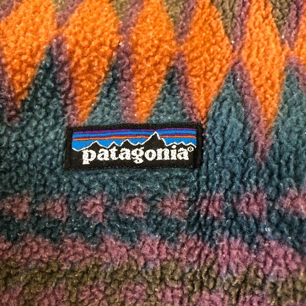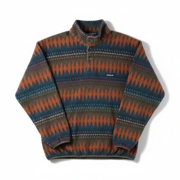 パタゴニア patagonia フリース 長袖 フェアアイル柄 ハイネック ロゴ入り カーキ オレンジ 青緑系 Lサイズ 966948