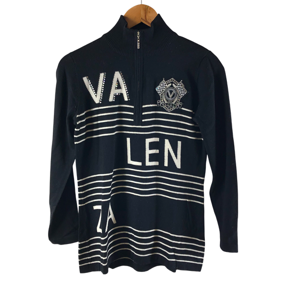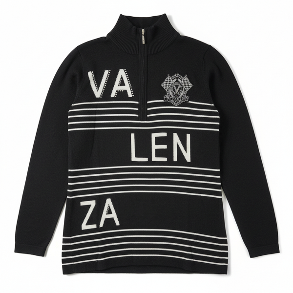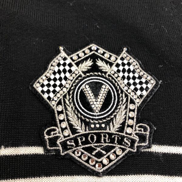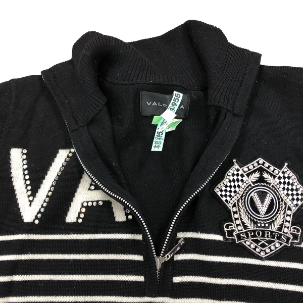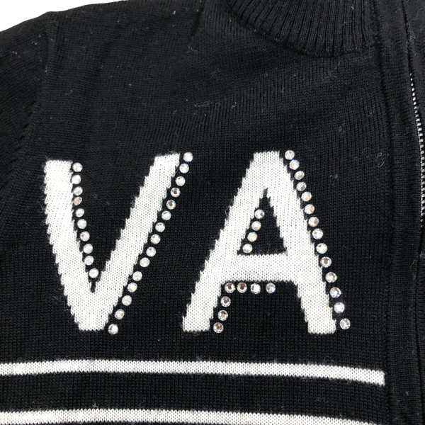 バレンザ VALENZA ニット トップス ビジュー装飾 ワッペン フロントファスナー 長袖 黒 40サイズ 984553