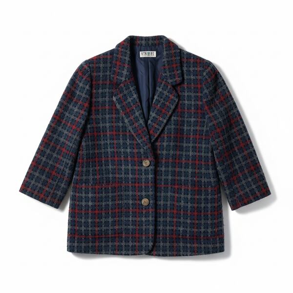 温かみのあるチェック柄が目を引く、季節感たっぷりのジャケットです。