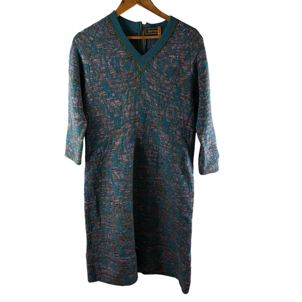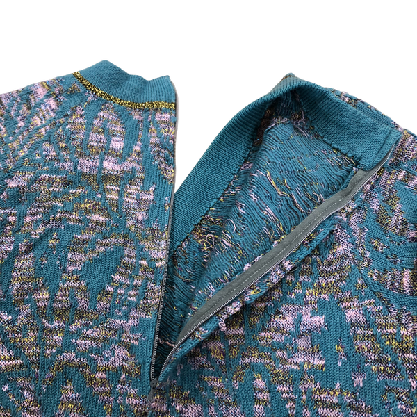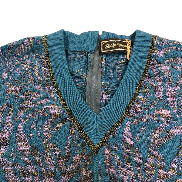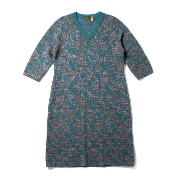 サイトウトヨコ 斉藤都世子 ワンピース ニットワンピース Vネック バックファスナー ラメ入り生地 ロング 緑系 984420