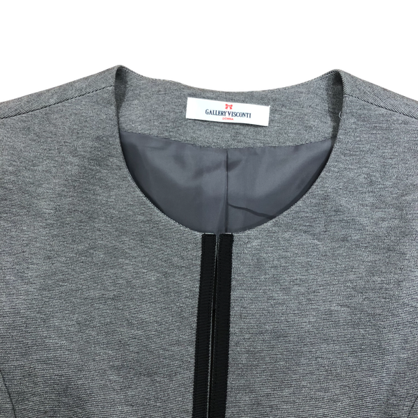 ギャラリービスコンティGALLERY VISCONTI ジャケット ノーカラージャケット 裏地付き 背面リボン装飾 グレー 984554