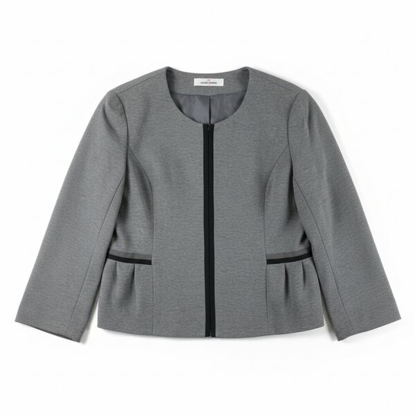 上品なグレーカラーが落ち着いた印象を与えてくれる、きれいめノーカラージャケットです。