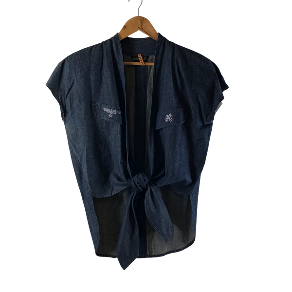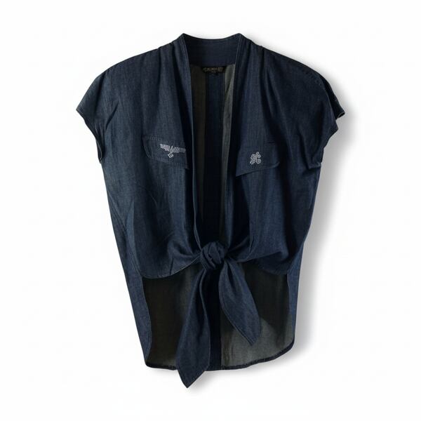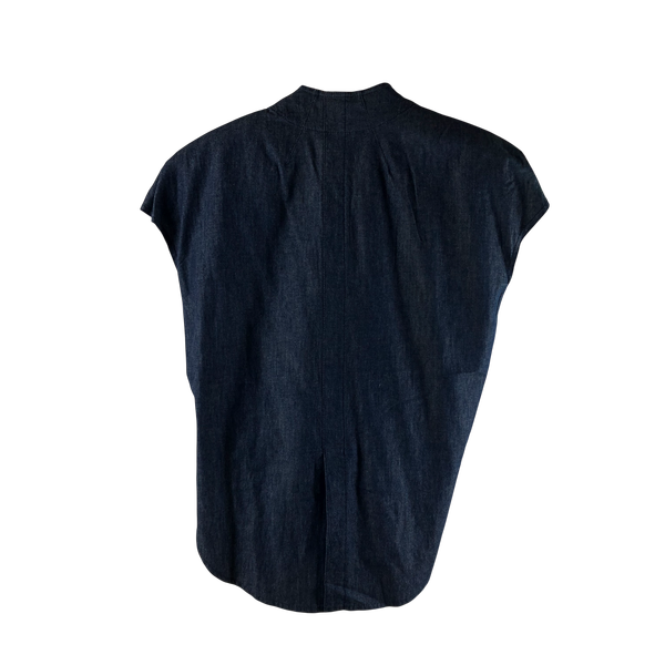 デニム素材の風合いが楽しめる、さらっと羽織れるノースリーブトップスです。