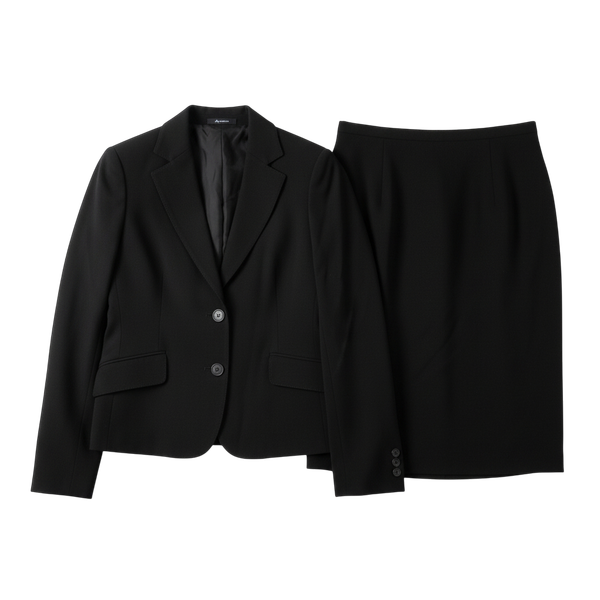 シンプルで頼れるブラックカラーの、ジャケットとスカートの王道セットアップです。