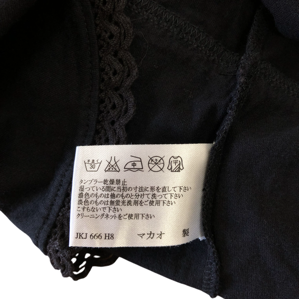 Vネックにレースの縁取りが入っているので、顔まわりをすっきりきれいに見せてくれます。