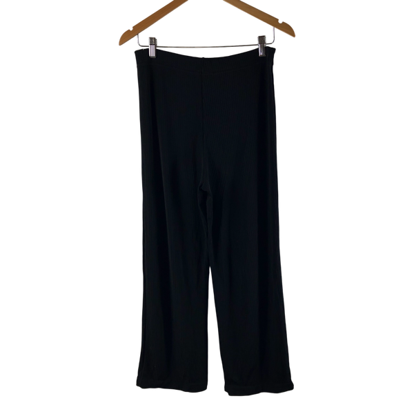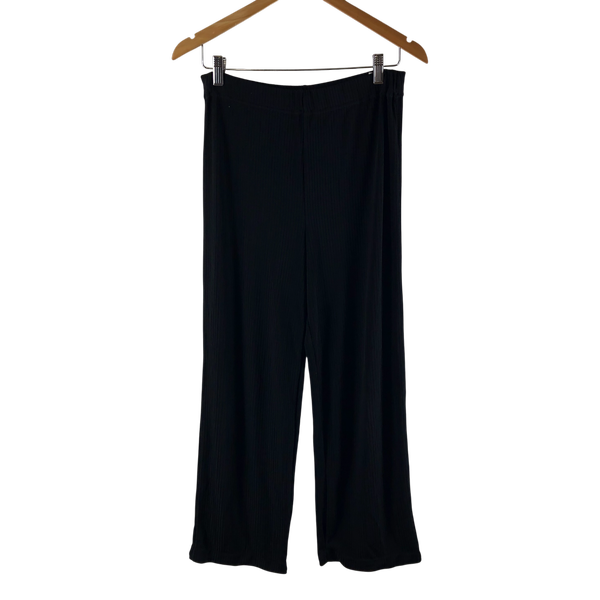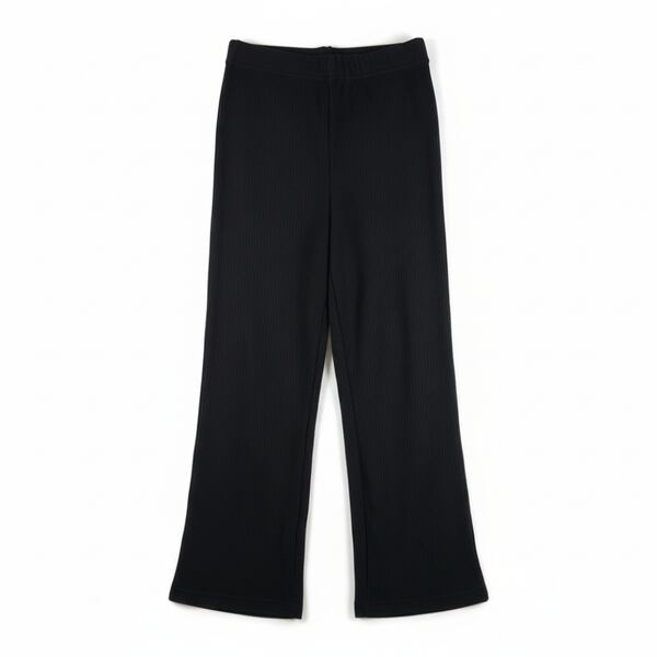 すとんと落ちるシルエットがきれいな、リブ素材のブラックパンツが入荷しました。