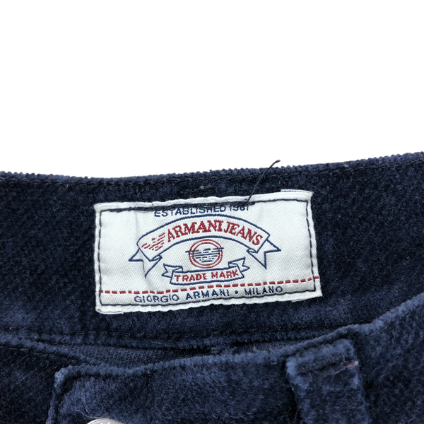 アルマーニジーンズ ARMANI JEANS パンツ コーデュロイ ストレート 革パッチ ロゴマーク ネイビー 31サイズ 984547