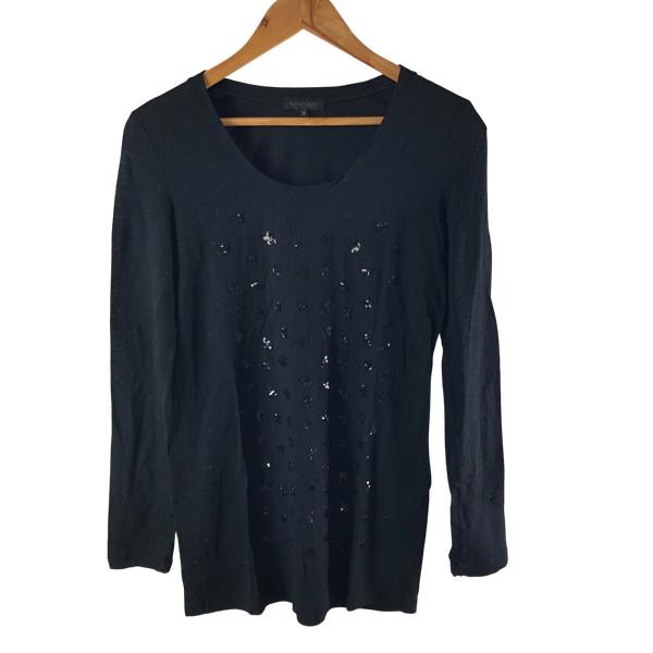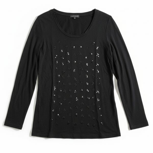 モガ MOGA カットソー 長袖 薄手 スパンコール クルーネック 黒 2サイズ 984558