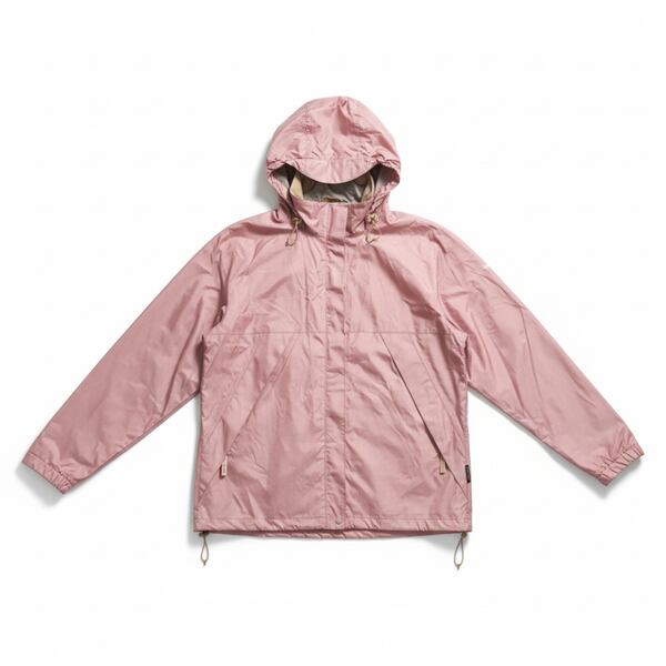 やさしいピンクカラーが目を引く、軽やかな着心地のフード付きジャケットです。