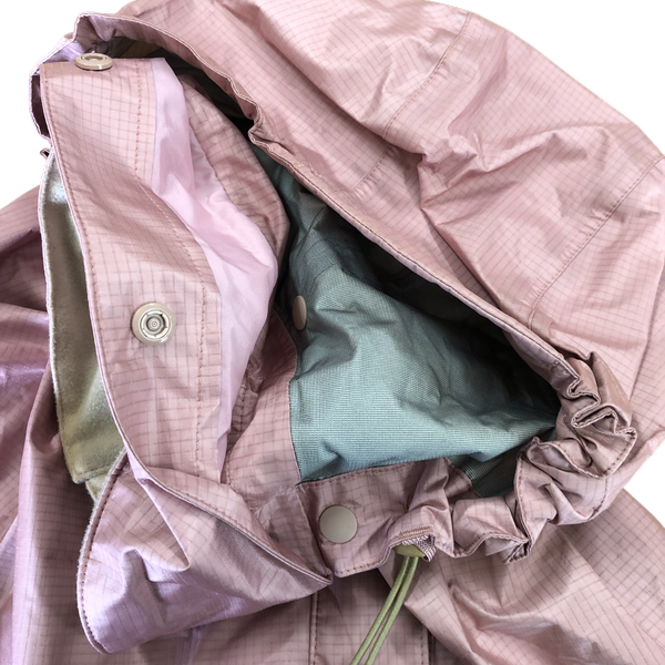 ホールアース WHOLE EARTH ジャケット ウィンドブレーカー チェック柄 格子柄 フード ジップ コードストッパー くすみピンク系 XLサイズ 984962