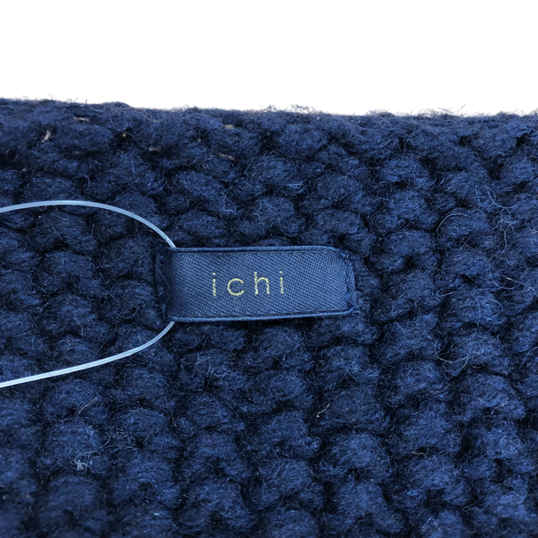 イチ ichi コート ニット 編みデザイン ウール ボタン ポケット ネイビー 829151