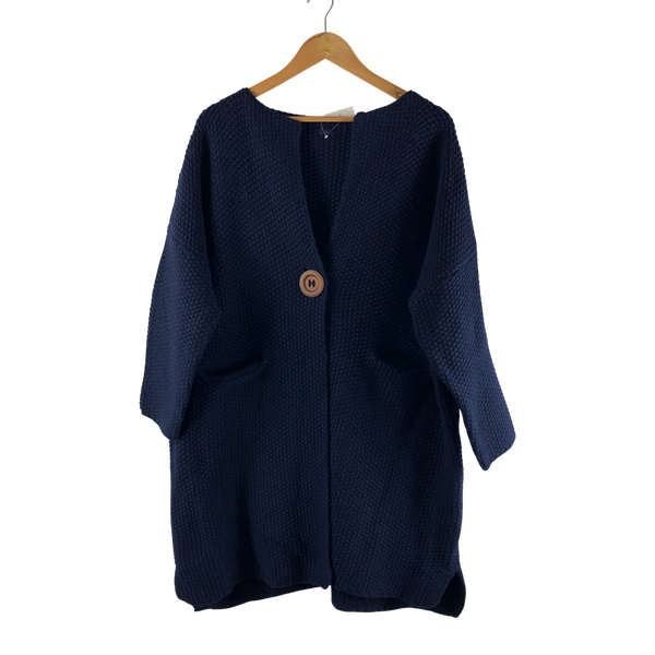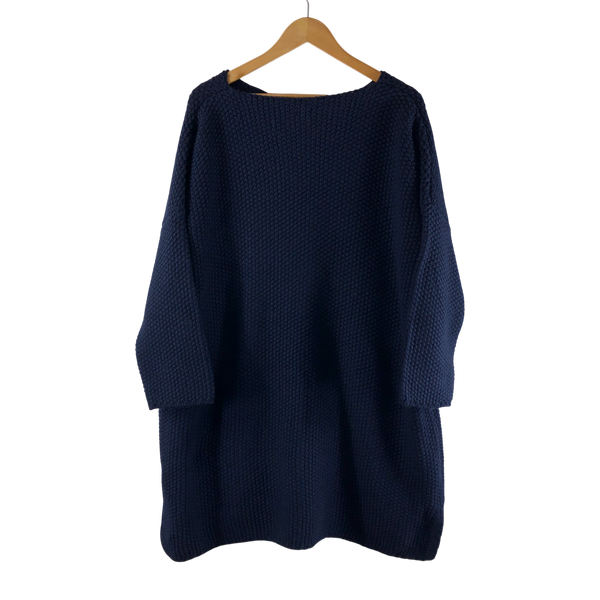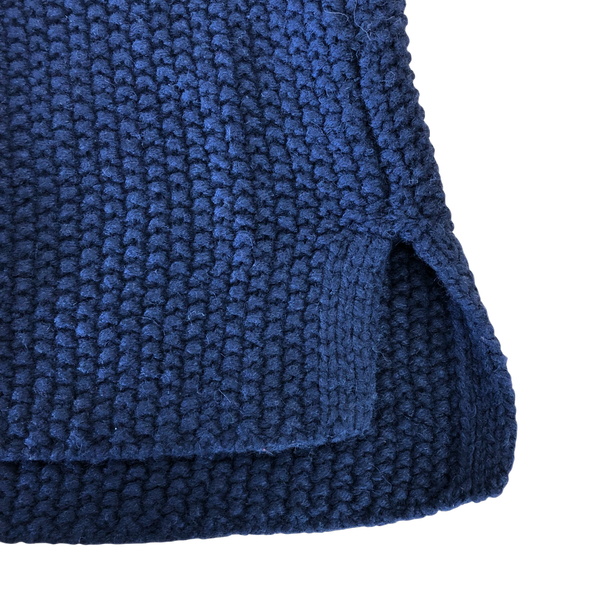 立体感のある編み地が特徴の、落ち着いたネイビーカラーのコートです。
