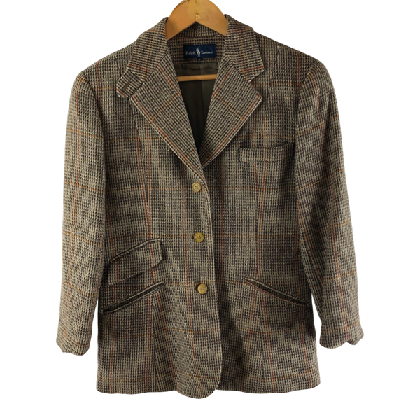 ラルフローレン Ralph Lauren ジャケット チェック テラードジャケット 裏地付き スリットブラウン系 9サイズ 984949
