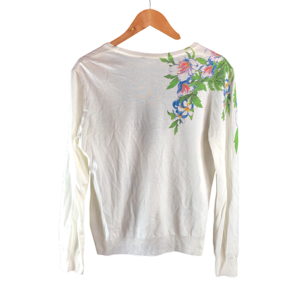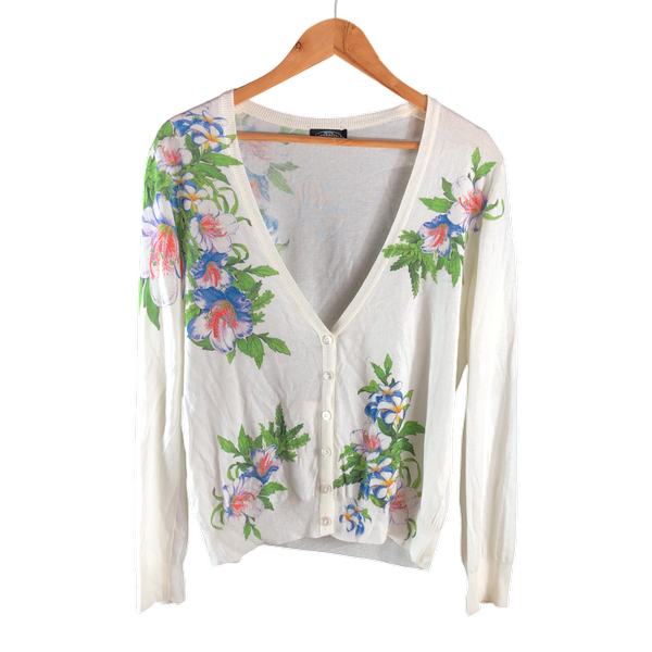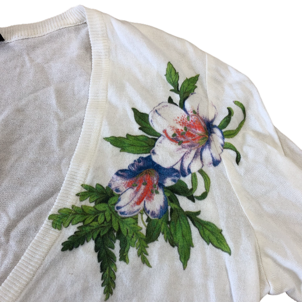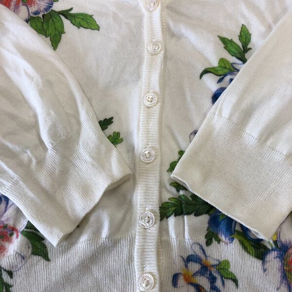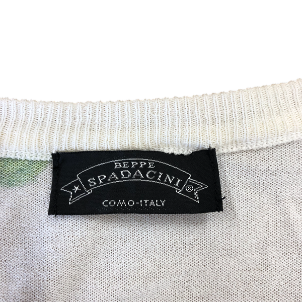 ベッペスパダチーニ BEPPE SPADACINI カーディガン Vネック 花柄 リブ ボタン 綿 日本製 緑 白系 42サイズ 980910
