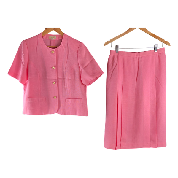 ラピーヌ LAPINE セットアップ ジャケット スカート スーツ 半袖 ゴールドボタン 肩パッド 裏地付き ピンク 15B2サイズ 984378