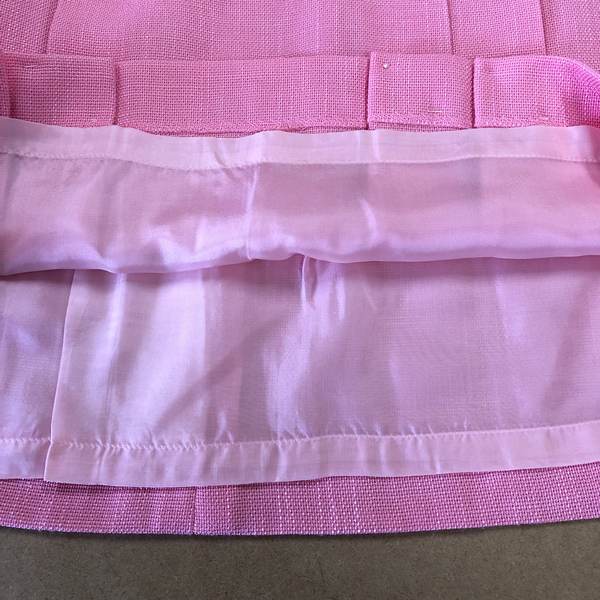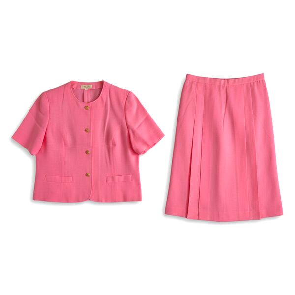 パッと目を引く華やかなピンクカラーが魅力の、上品で可愛らしいセットアップです。