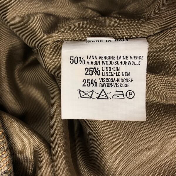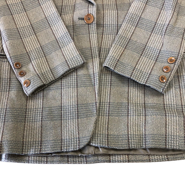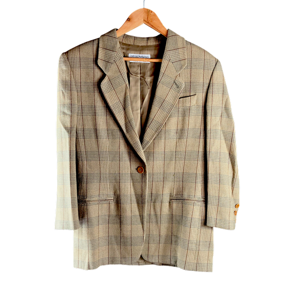 エンポリオアルマーニ EMPORIO ARMANI ジャケット チェック柄 イタリア製 フェイクポケット 肩パッド ベージュ系 42サイズ 984566