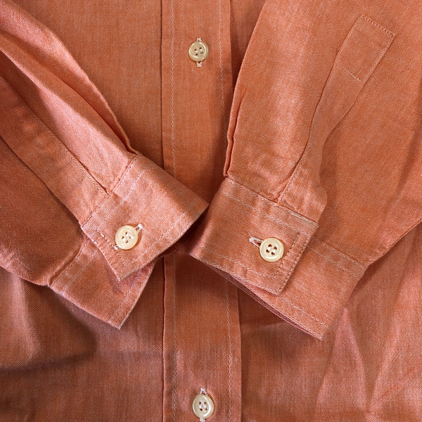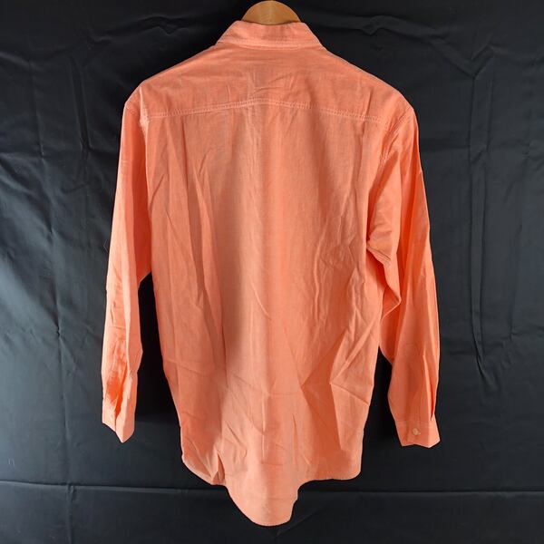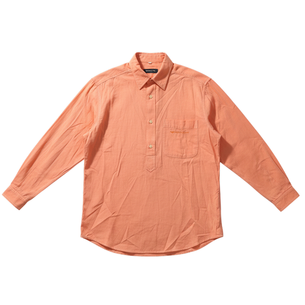 やさしいオレンジカラーが目を引くプルオーバーシャツで、コーデの主役にぴったりな一枚です。