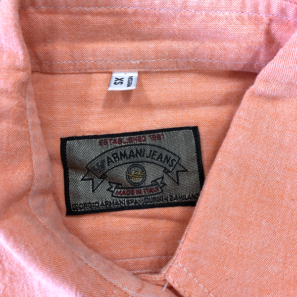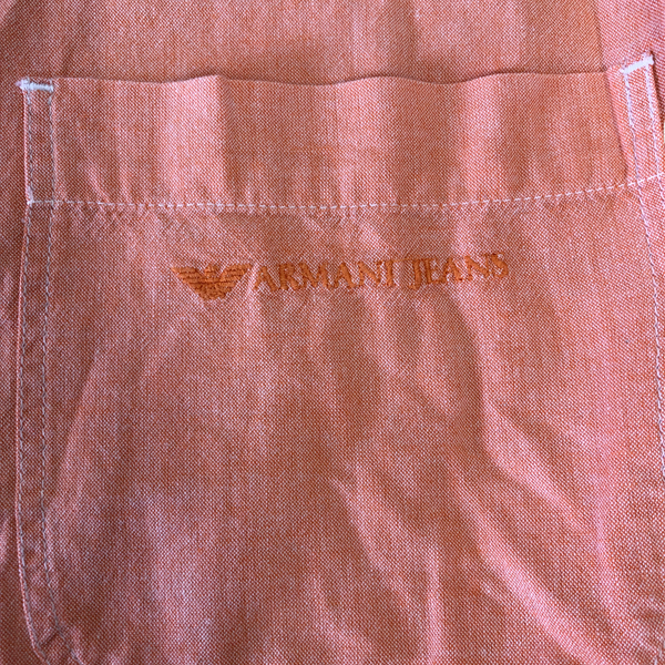 アルマーニジーンズ ARMANI JEANS シャツ ロゴマーク ポケット イタリア製 オレンジ系 XSサイズ 984950