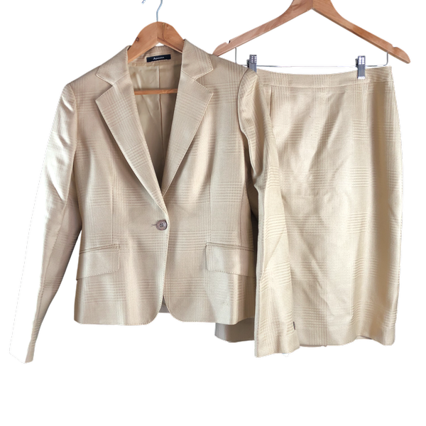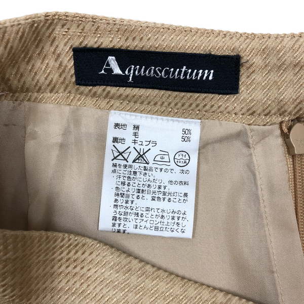 アクアスキュータム Aquascutum スーツ スカートスーツ シルク昆 チェック柄 裏地付き ベージュ系 7サイズ 973300