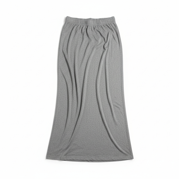 柔らかなグレーのカットソー素材が心地よい、シンプルで使いやすいロングスカートです。