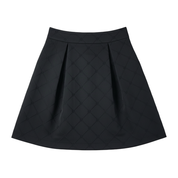 立体感のあるキルティング素材が目を引くフレアスカートで、コーデに程よい華やかさをプラスしてくれますよ。