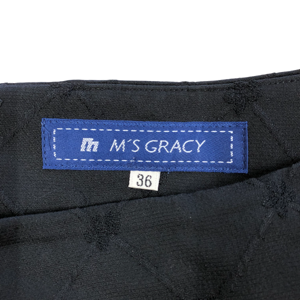 エムズグレイシー M’S GRACY スカート フレア ミニ丈 柄模様 ブラック 36サイズ 984524
