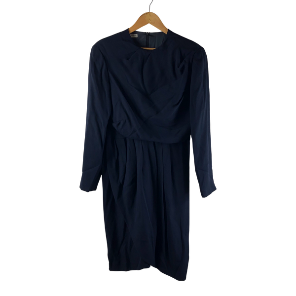エンポリオアルマーニ EMPORIO ARMANI ワンピース 長袖 フレア ウエストデザイン 肩パッド ネイビー 46サイズ 984567